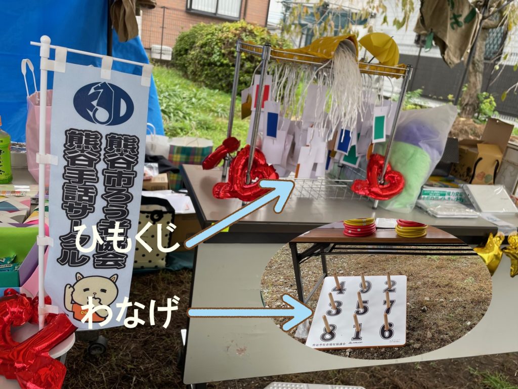 数多くの団体が出店しましたが、熊谷からも「ひもくじ」と「わなげ」の出店をしました。