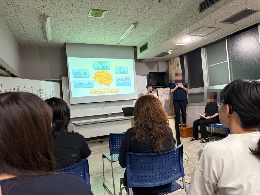 まず、西熊谷病院の精神保健福祉士でおられる永井さんより「認知症の基本知識」についてわかりやすくお話していただきました。次に、手話による寸劇をやったところ、わかりやすいと好評でした。最後に、ななふく苑の高橋さんより、ろう者の認知症についてお話をしていただきました。参加者には、オレンジリングと参加証明書が配布されました。