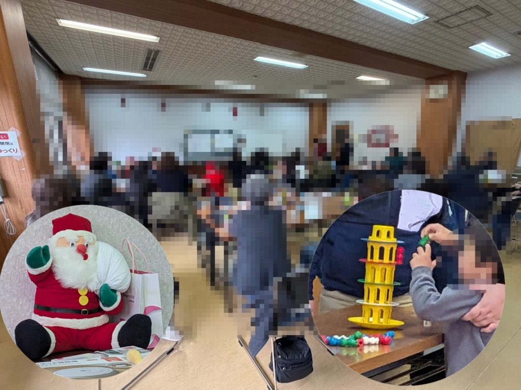 今年最後の行事として妻沼中央公民館にて合同クリスマス会を開催しました。いつもは狭い福祉会館ですが、広い部屋でゲームも楽しめたようです。お子さまの参加が5人いたのでおもちゃを用意したら結構皆で楽しめていました。お菓子はバイキング形式でしたが、最後には皆さんに持ち帰ってもらいました。メリークリスマス。今年は色々とありがとうございました。良いお年をお迎えください。参加者:37名
